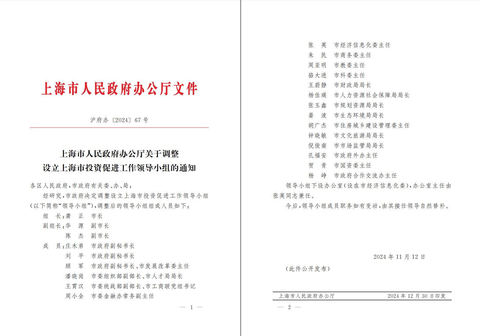 18 03-31 17:04上海市政府调整设立上海市投资促进工作领导小组