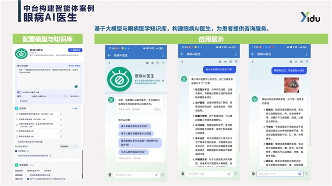 在医疗场景尤其是眼科领域的应用中,医渡科技通过检索增强生成(RAG)技术和智能体工作流编排,提升大模型输出的准确性和实用性。RAG 技术让大模型基于检索到的知识库内容进行总结回复,避免凭空捏造;智能体工作流编排则通过托拉拽的方式,将影像识别、语音处理、知识库查询等模块整合,实现复杂医疗任务的自动化流程处理。