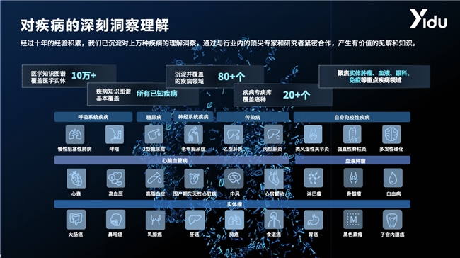 医疗数据的深入挖掘离不开对疾病的深刻认知能力。截至2024年9月30日,已完成80+疾病领域的数据治理,累计处理超55亿份医疗记录,从眼科专病数据库,到肿瘤等高价值大数据平台,携手国内顶尖医院共建大数据生态,为大模型训练和应用落地夯实数据底座。