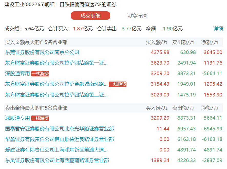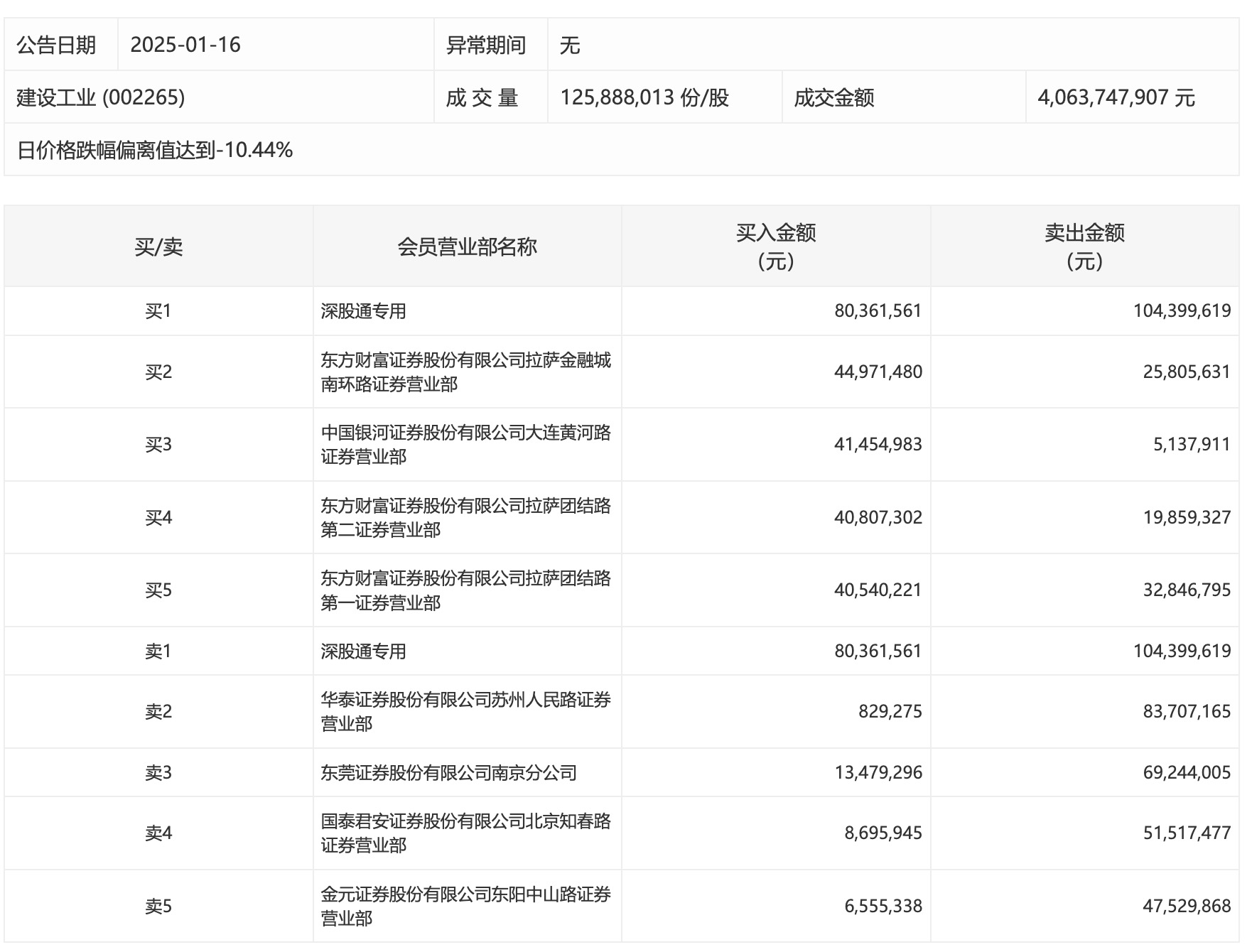 0 01-17 20:21建设工业今日跌停 深股通席位买入8036.16万元并卖出1.04亿元